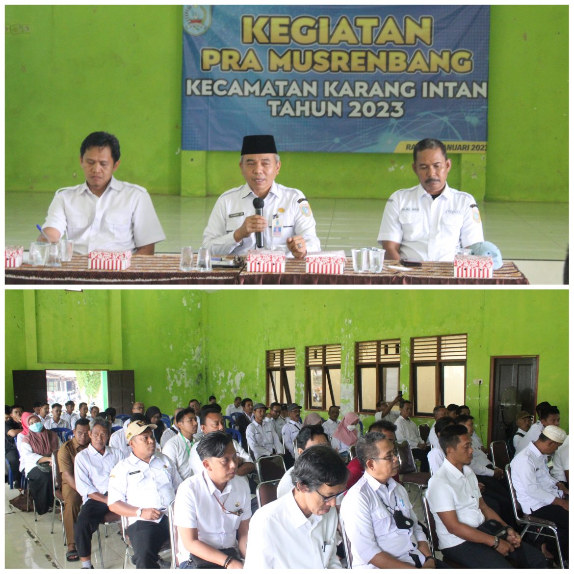 Karang Intan, InfoPublik – Dengan memasuki awal tahun 2023, Kecamatan Karang Intan menggelar Pra Musrenbang yang bertempat di Aula Pokogonco Achmad Karang Intan, Rabu (11/1/2023).