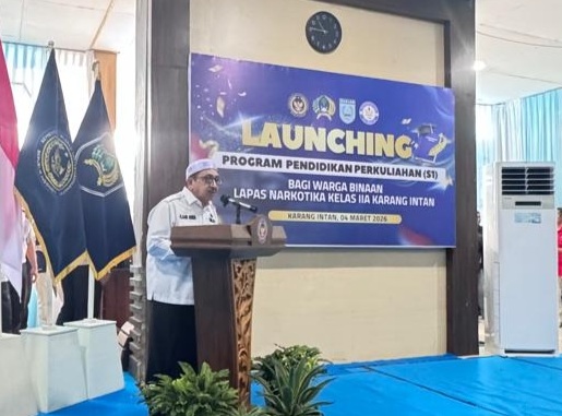 Camat Karang Intan, H. Pusaro Riyanto, didampingi Kasi Trantib Nur Rasyid menghadiri undangan Launching Program Perkuliahan Strata I bagi warga binaan di Lembaga Pemasyarakatan (Lapas) Narkotika Kelas IIA Karang Intan, Rabu (4/3/2026).